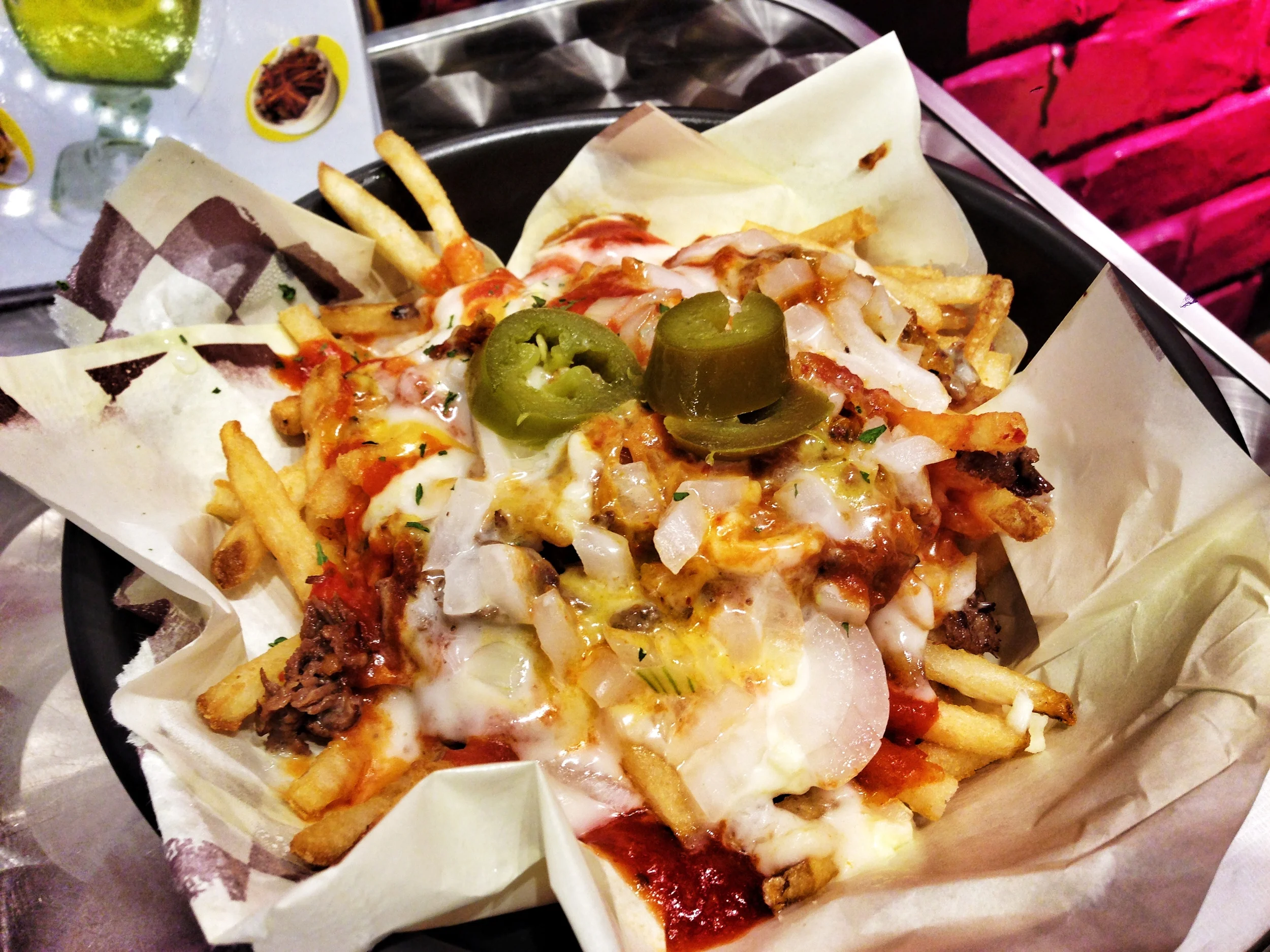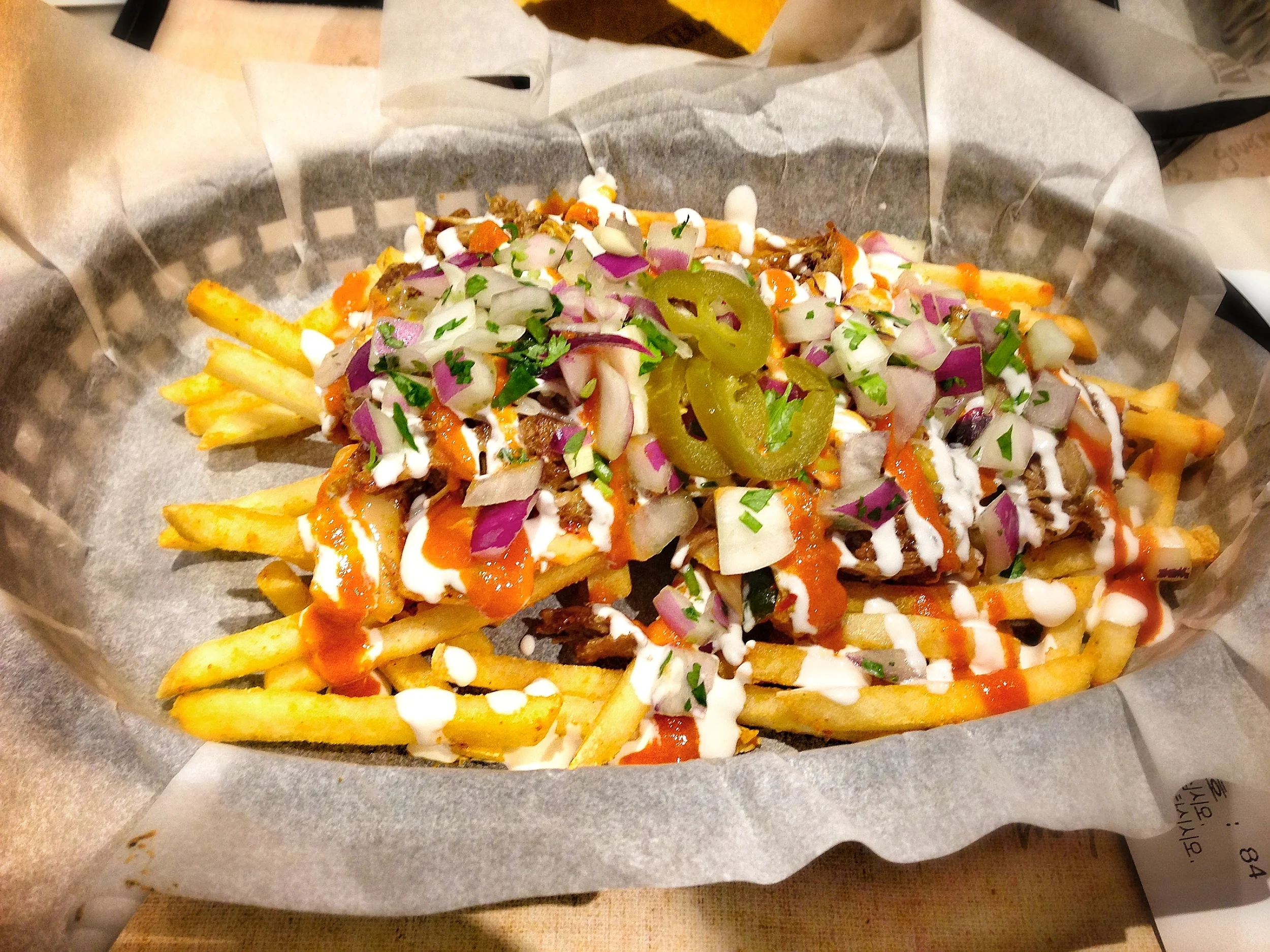 Claiming the title of “America’s Best Fries” these fries don’t disappoint. The same care that goes into the ingredients of their food, of course, goes into these fries. This is the reason I am putting these at the top of the list. The fries are perfectly fried and smothered in gooey goodness. The cheese, sauces, and meat are all well-balanced with flavor and coverage of said fries. Topped with onions, but not too much, and tomatoes, this basket of fries will keep you coming back for more. I love the tacos at Coreanos, as evidenced by my Mexican blog, but these fries are usually the first thing I crave when I want to eat there. These fries haunt my dreams. I wish I could be shoveling them into my face as I write this, in fact. Do yourself a favor and get some! Also, not a budget basket, they come in at 12.